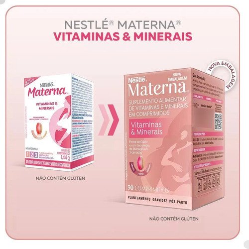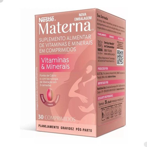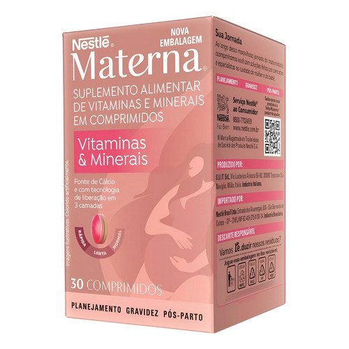 Parabéns por esta fase tão especial! Sabemos que durante a gestação e a amamentação, seu corpo precisa de um cuidado extra. Materna Nestlé foi pensado especialmente para você, futura mamãe, oferecendo um suporte nutricional completo em um único comprimido diário.